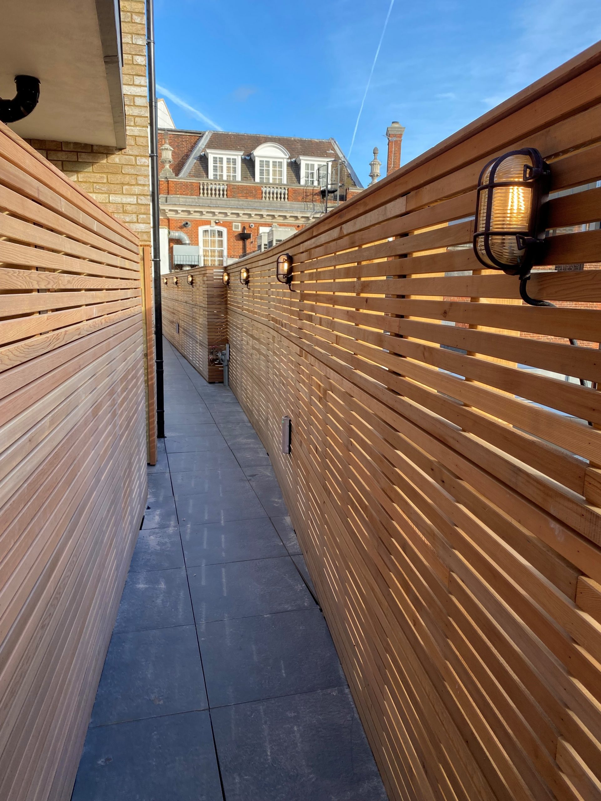 Construction of 9 New Build Flats – Eternal build completed 1st and 2nd fix carpentry works, bespoke joinery, flooring, full decorations, rendering and fencing/cladding.