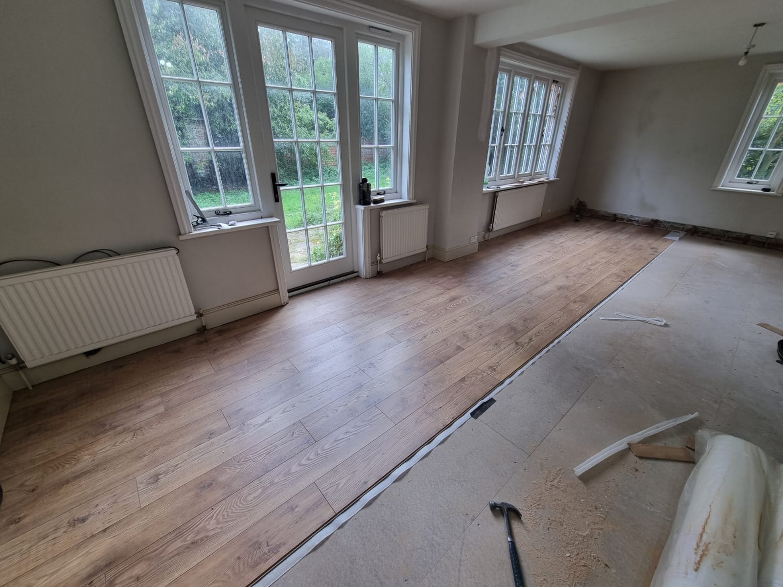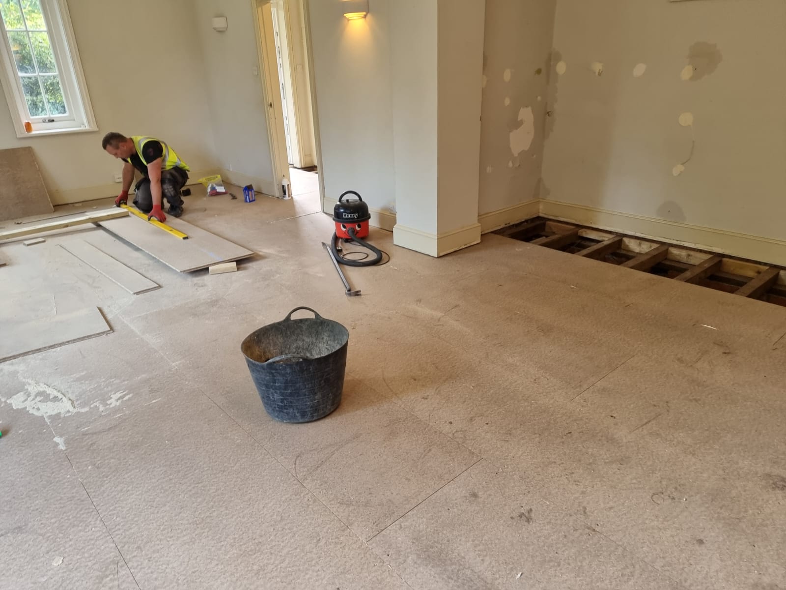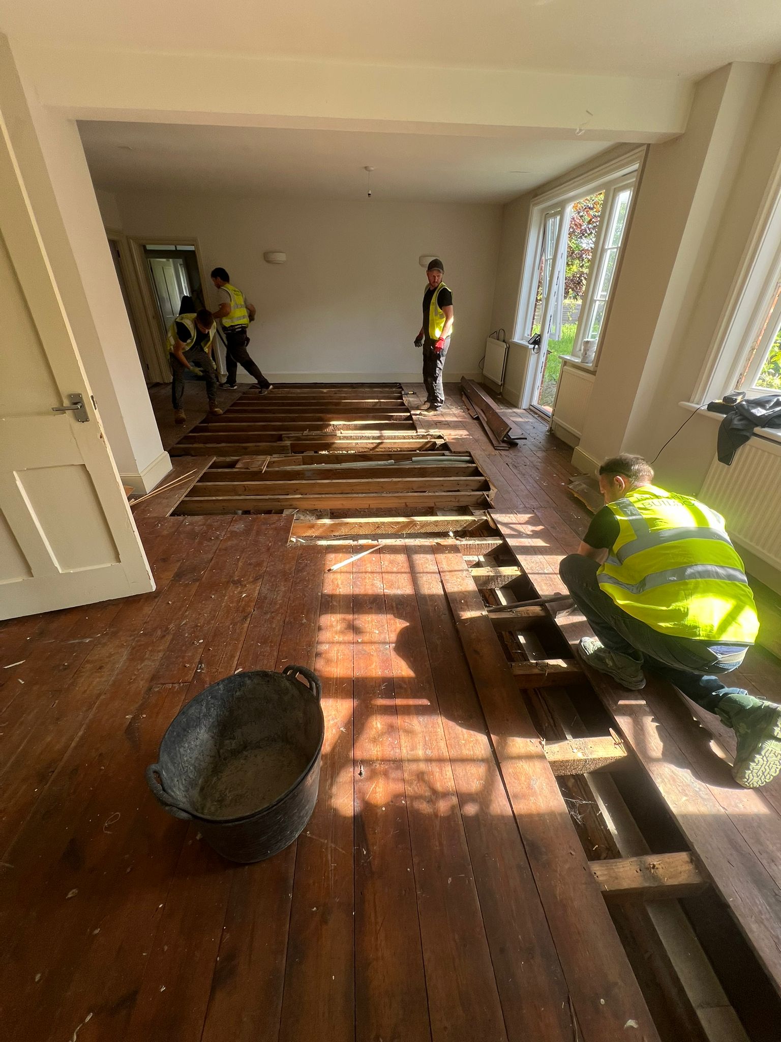 The successful tender included full strip out, alterations to existing walls, forming new structural openings to create open plan living, reconfiguration including blocking up of existing doorways, first and second fix carpentry, new flooring, tiling, plastering, electrical works, plumbing, new bathrooms and a new kitchen/utility room.